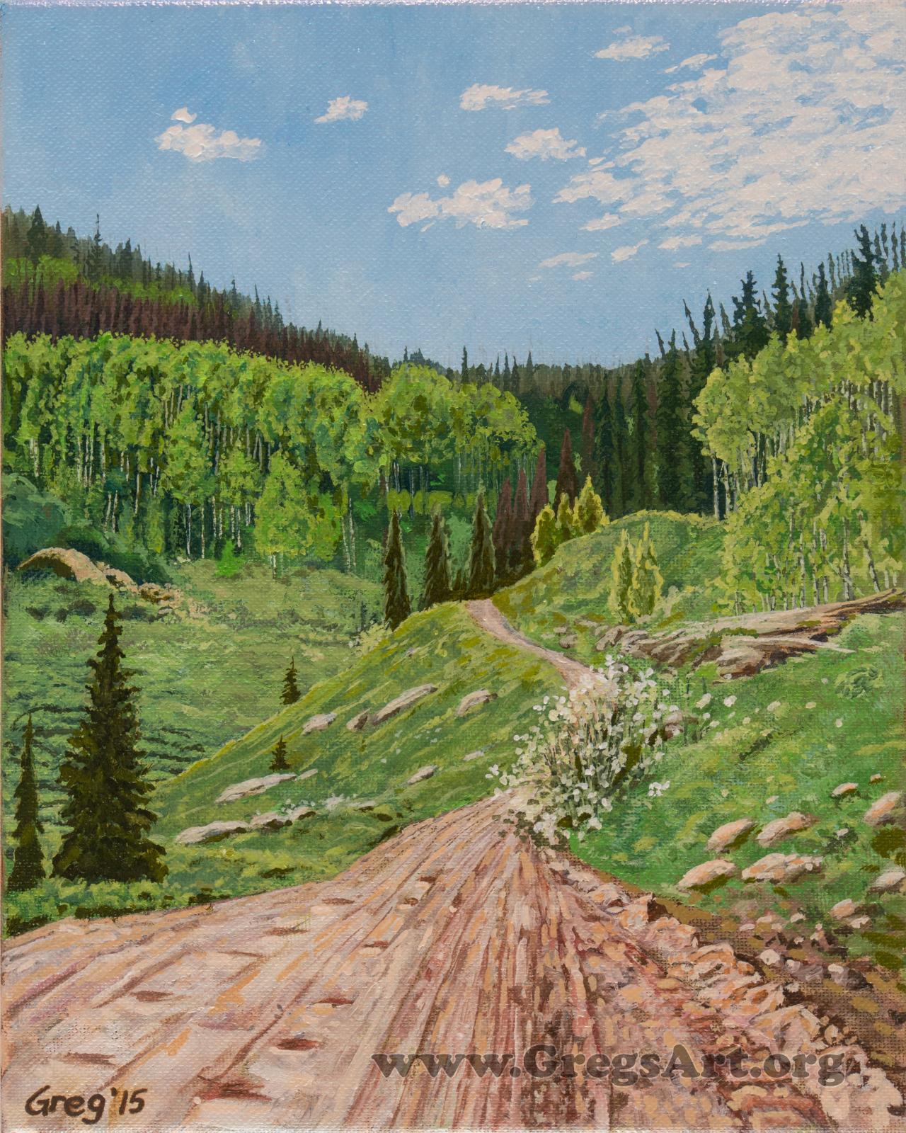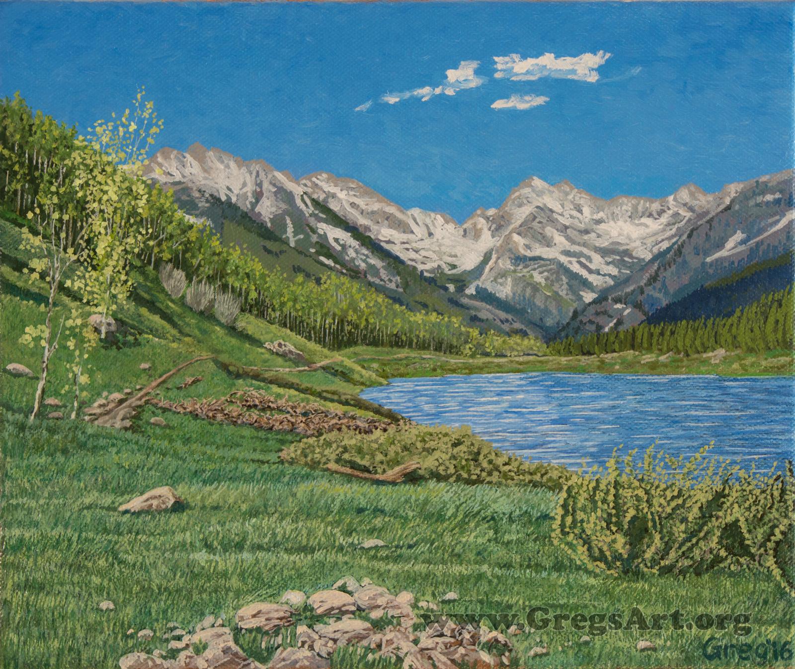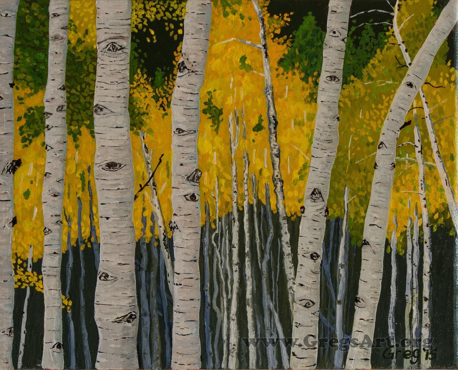 Fall in the mountains is fireworks in slow motion. The backdrop consists of dark greens, grays and blues with bursts of lime green, yellows ranging from Cadmium to Azo and oranges from gold to autumn rust. The massive forests of aspens dotting the Rockies are the west’s version of Vermont’s maples, but at 8000-plus feet.