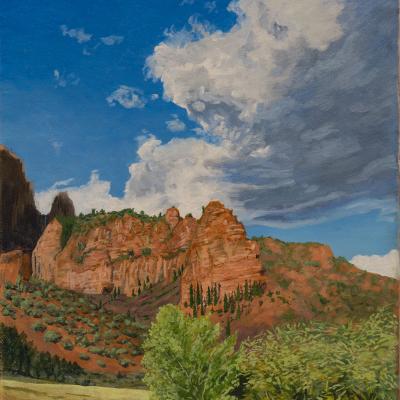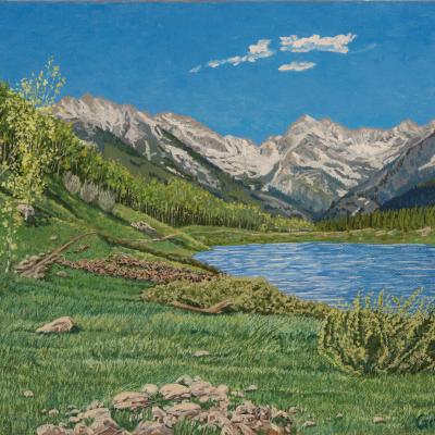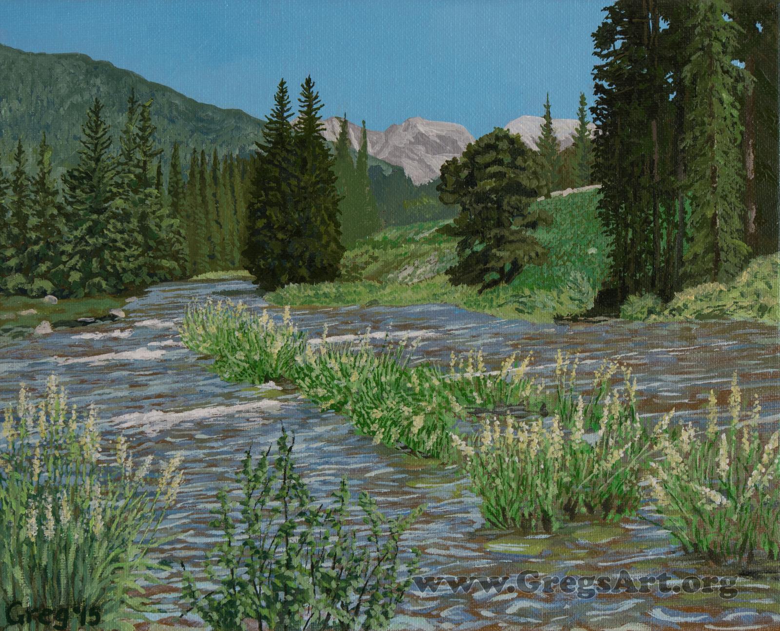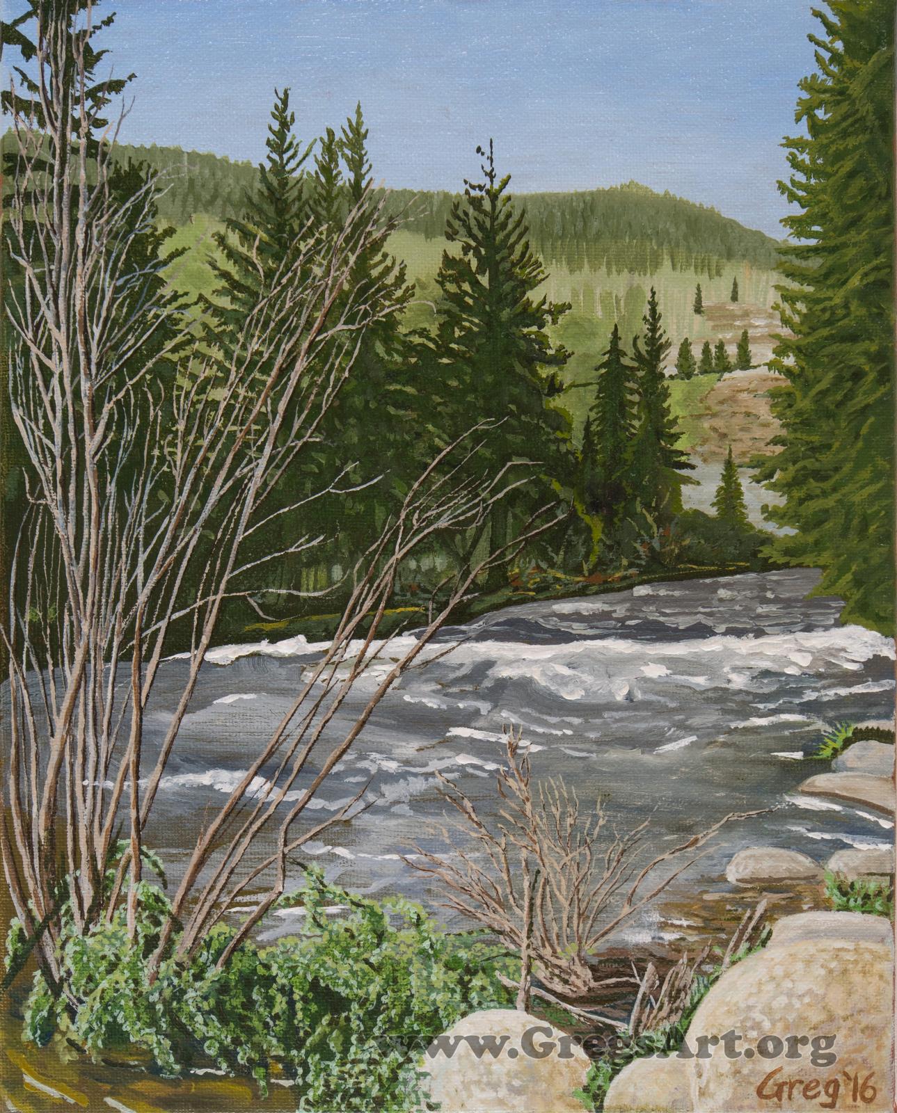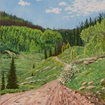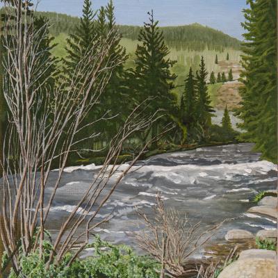 Spring in the mountains is often called the “mud season,” but for the painter this is a bit of a misnomer. Nature is up and running from its winter slumber. Though it is the briefest of the mountain seasons, it is a truly thrilling time for the artist. The rivers and streams pound with ice-cold mountain runoff. From the shore, all manner of giant debris--felled trees taller than a house--can be seen bobbing like a child’s toy down the river. The water is green-brown with froth and white caps and sky blue ripples. One day there is a muddy field, the next, tall, defiant, verdant mountain grass. The mountains are a kaleidoscope of greens--green shoots, budding leaves, evergreens and even the rushing water.